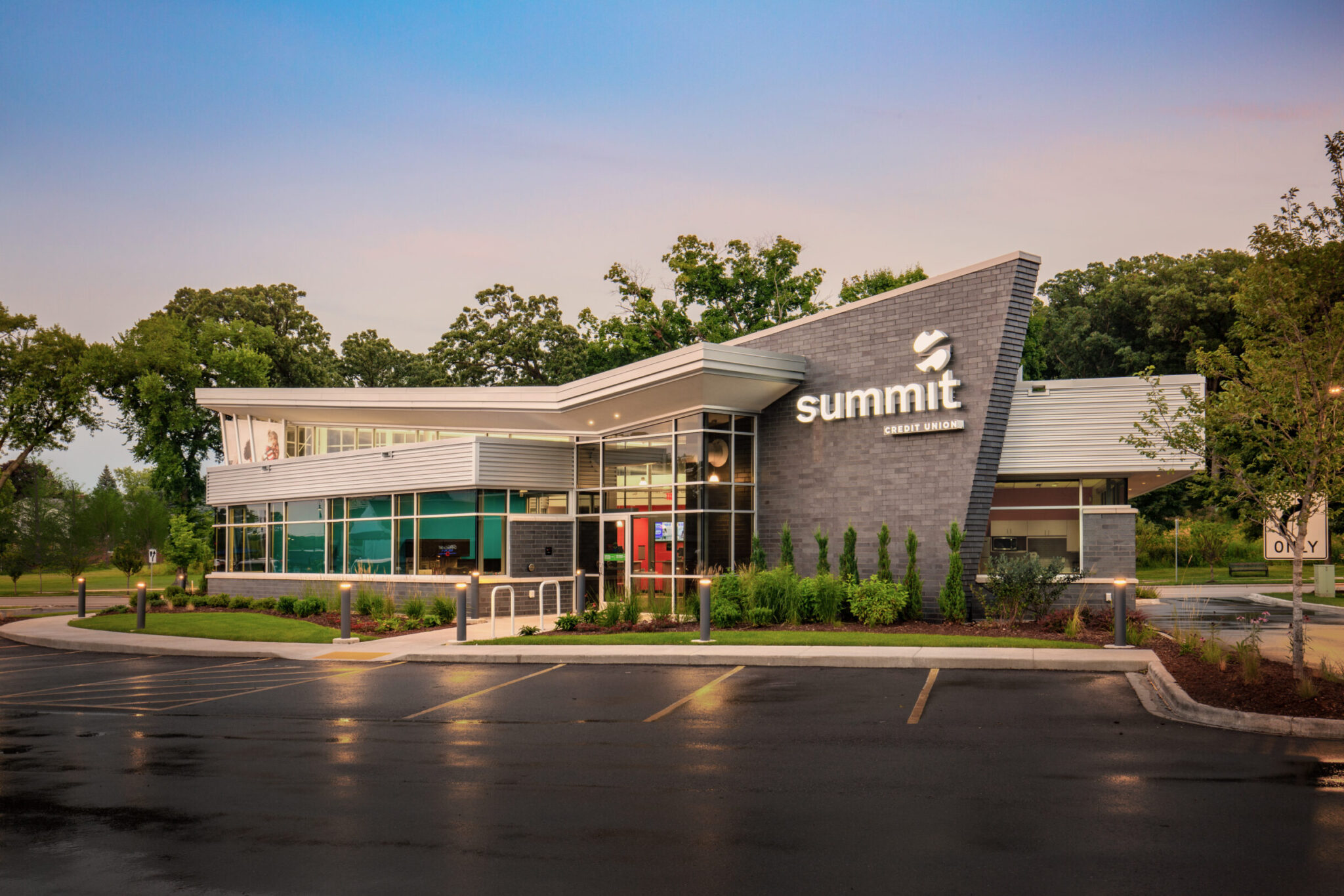 Findorff is proud of our award-winning work with Summit Credit Union, which spans new construction and renovation services for over 20 branches across Wisconsin, totaling over 280,000 square feet. Many of these projects include features like private offices, lobby and retail spaces, and drive-through tellers. Each branch features unique architectural elements, angled roofing, decorative ribbed metal panels, and high-end wood and metal casework.