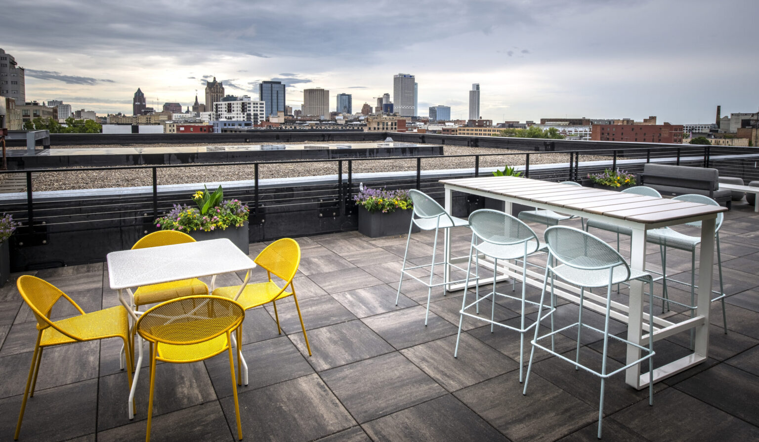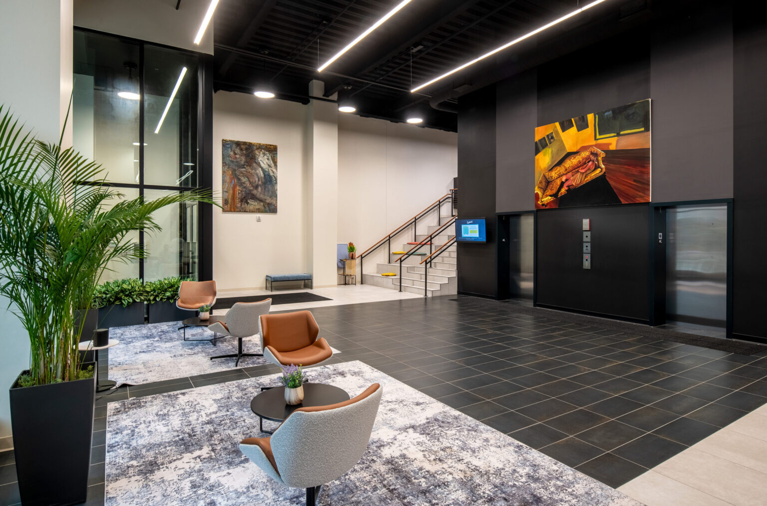This historic renovation transformed an antiquated building into a future-ready innovation hub proudly serving Milwaukee, Wisconsin. The building features 30,000 square feet of added space, while retaining its historic authenticity of cream city brick, wood floors, exposed concrete mushroom columns, and large steel windows.