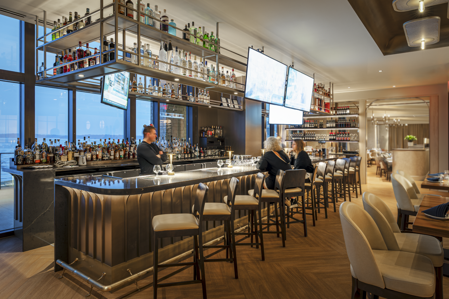 • One Prime is an upscale steakhouse with unique lakefront views and includes two elegant private dining rooms with high-end finishes, in addition to the main dining room.