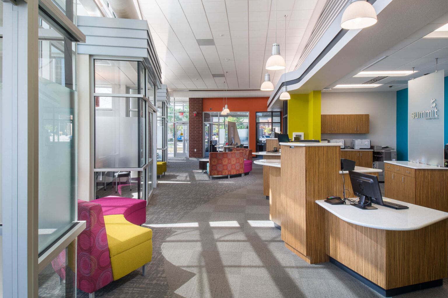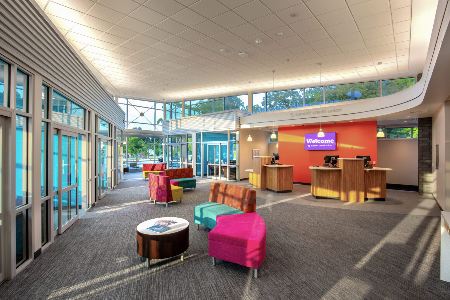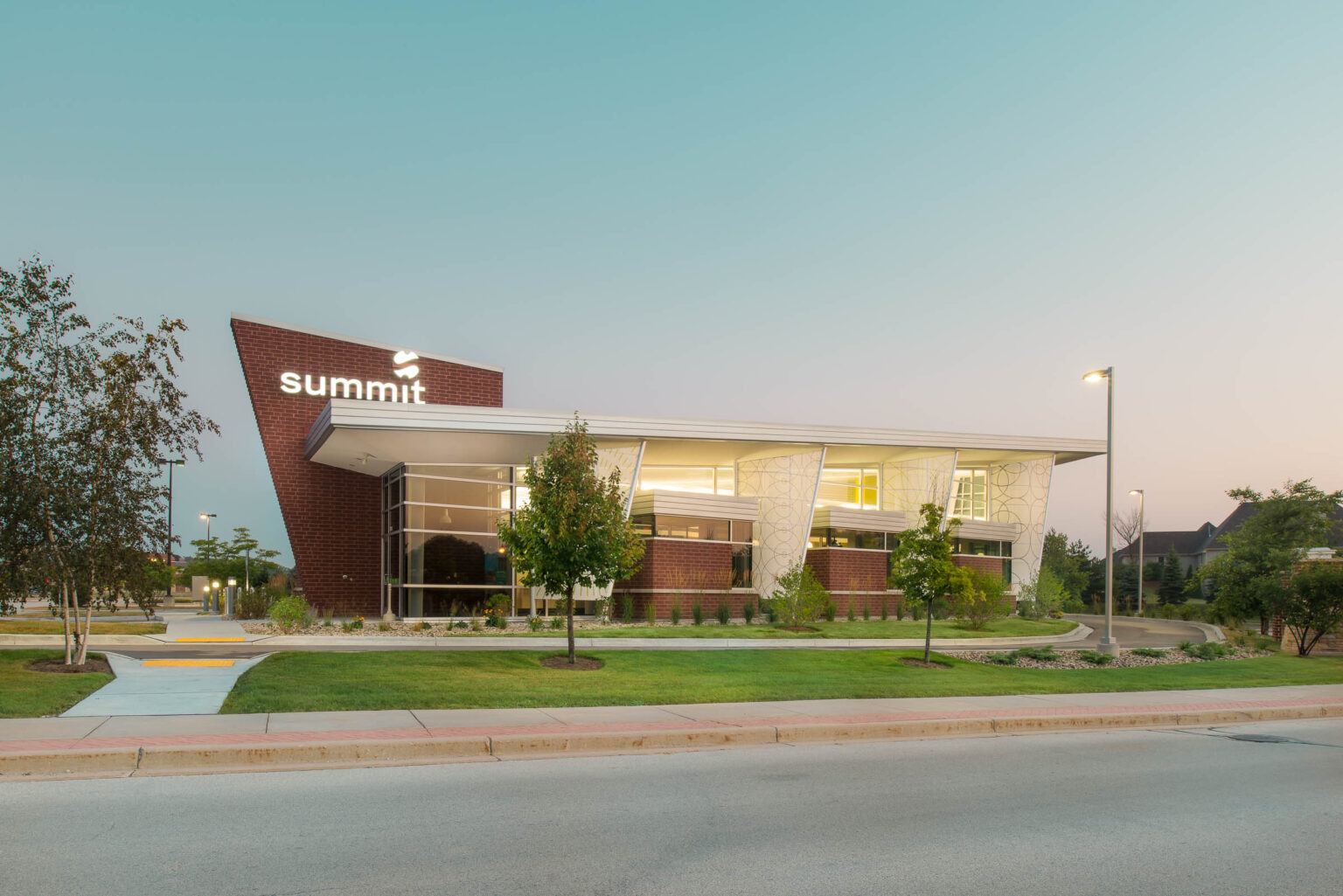 Findorff is proud of our award-winning work with Summit Credit Union, which spans new construction and renovation services for over 20 branches across Wisconsin, totaling over 280,000 square feet. Many of these projects include features like private offices, lobby and retail spaces, and drive-through tellers. Each branch features unique architectural elements, angled roofing, decorative ribbed metal panels, and high-end wood and metal casework.