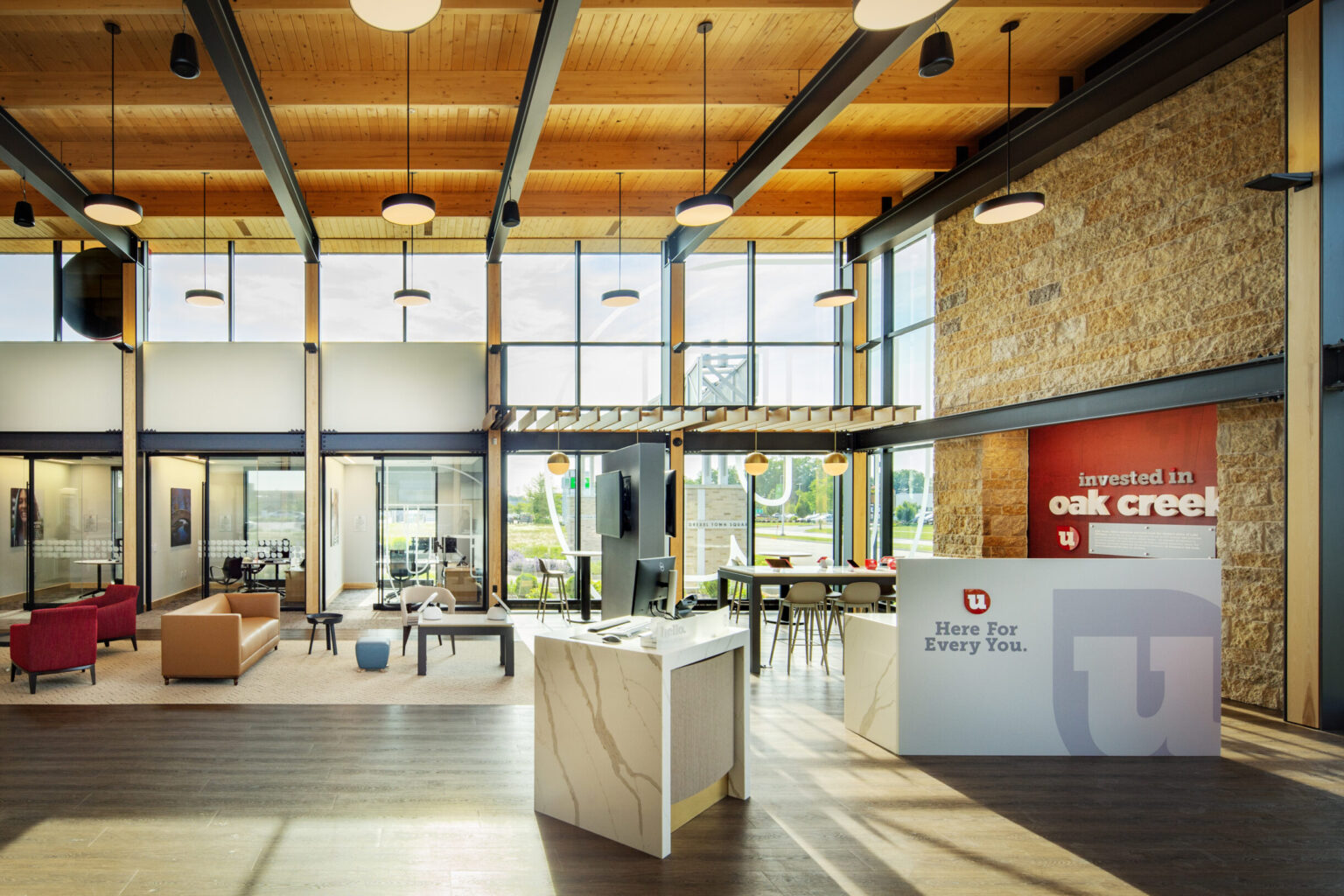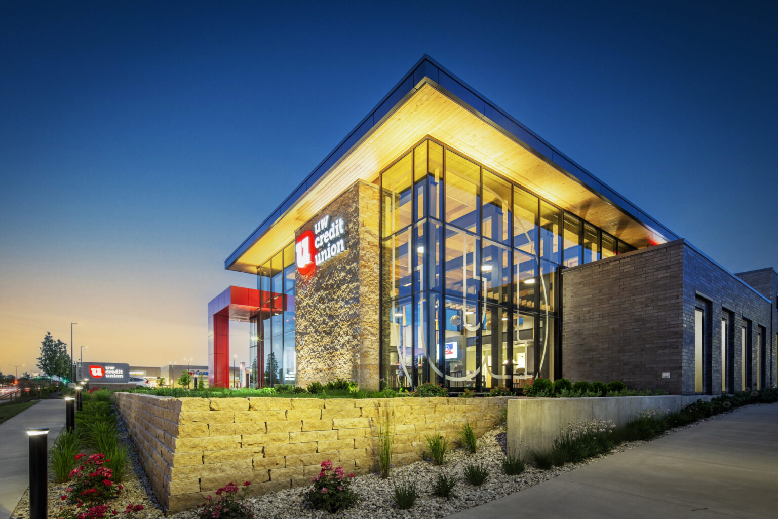Findorff and the UW Credit Union have maintained a strong relationship for the past decade, having constructed and renovated over a dozen branches in Wisconsin, including their headquarters in Madison. These branches focus on the employee and member experience, often featuring modern, open-concept offices and conference rooms, drive-thru banking, and, in select locations, geothermal heating systems. Building elements such as exposed areas, upper clerestories, high end finishes, and underground storm water management put these facilities at the forefront of modern financial institutions.